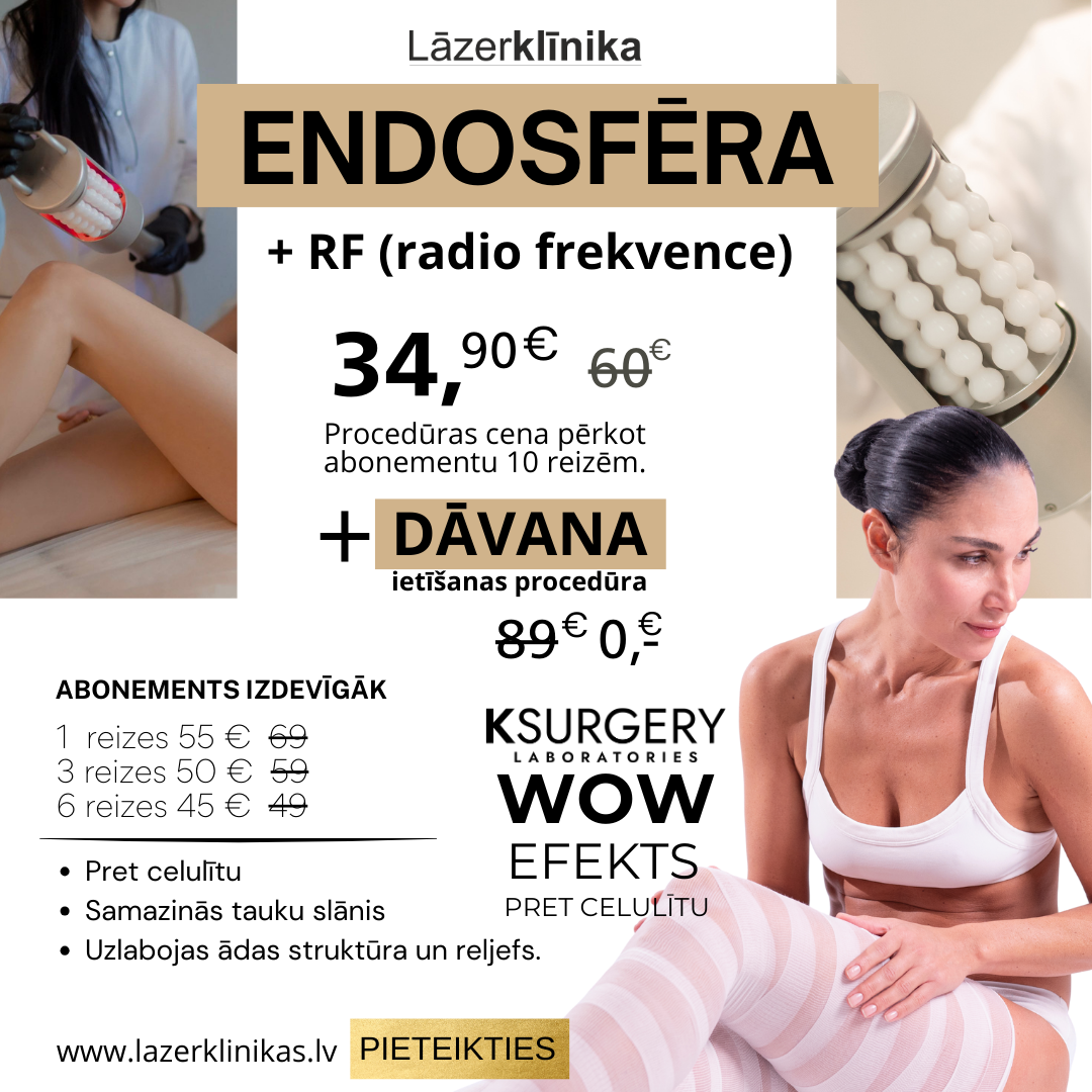 Rezultāts – slaidāks siluets, gludāka, stingrāka āda un uzlabots ķermeņa tonuss jau pēc pirmās procedūras!